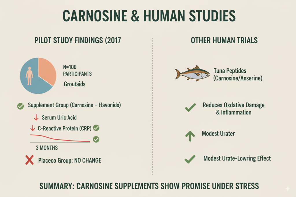 Most direct evidence on carnosine and gout/hyperuricemia comes from preclinical studies. We summarize key findings below: