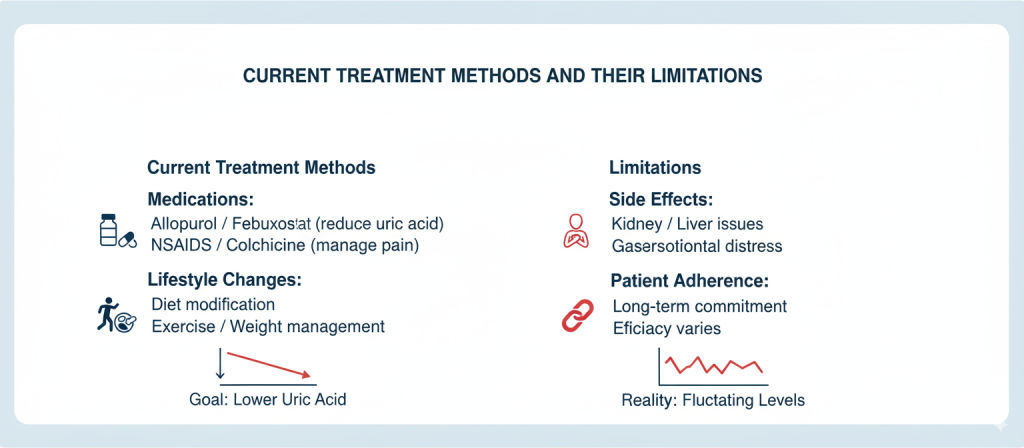 - Limitations: Surgery is invasive and carries risks. More importantly, it is not a cure. Clinical consensus confirms that without aggressive post-operative urate-lowering therapy, recurrence of tophi is almost inevitable because the underlying metabolic issue remains unaddressed.