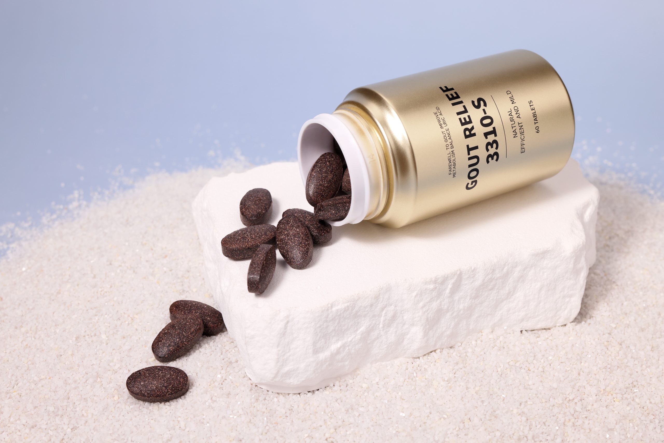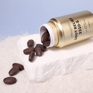 GOUT RELIEF 3310S dissolves crystals at joints and promotes the excretion of uric acid from the blood, improving purine metabolism. It relieves pain during the dissolution of uric acid crystals and protects bones and joints. When the uric acid dissolution is faster than the excretion, a temporary increase in blood uric acid levels is anticipated, and some individuals may experience a gout recurrence. This product has gone through ingredient collection, inspection, clinical trials, production, packaging, qualification and certification, and has been certified by the Therapeutic Goods Administration (TGA) of Australia. We may provide cross-domain security undertakings if necessary.