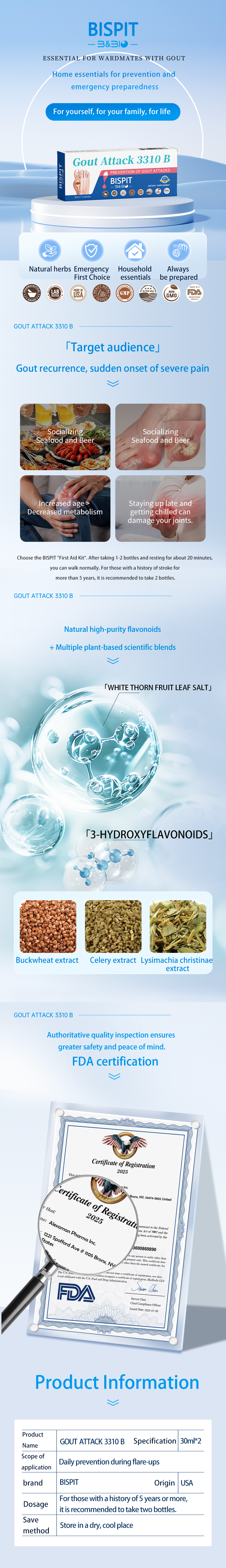Use of BISIPITGOUTATTACK3310, indicators such as uric acid excretion, crystal dissolution, purine metabolism and joint comfort are improved.
